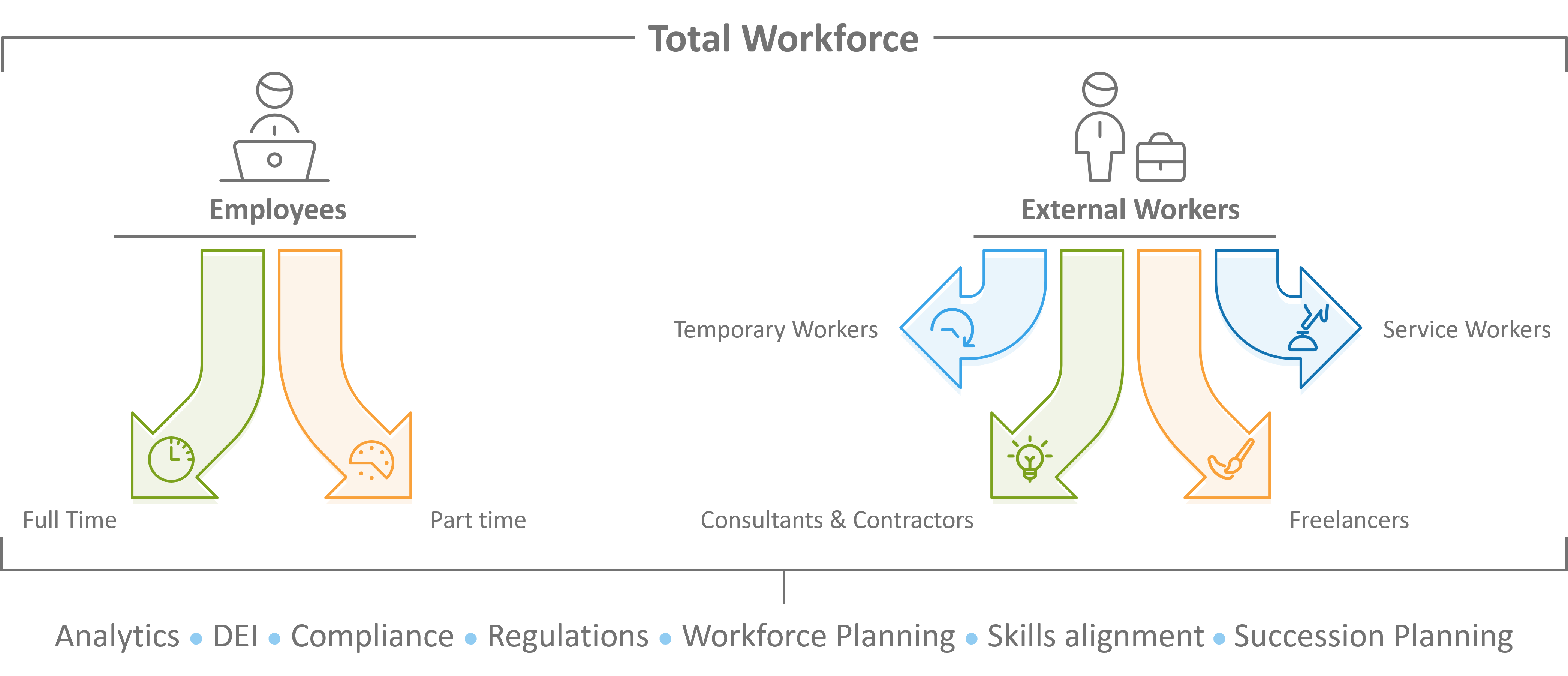 תכנון וניהול כח אדם מבוסס נתונים ויכולותמקסום השימוש ביכולות עובדים פנימיים וחיצוניים, בעזרת אנליטיקה מתקדמת, תובנות ניתנות לפעולה (Actionable Insights) ושיטות Best Practice
